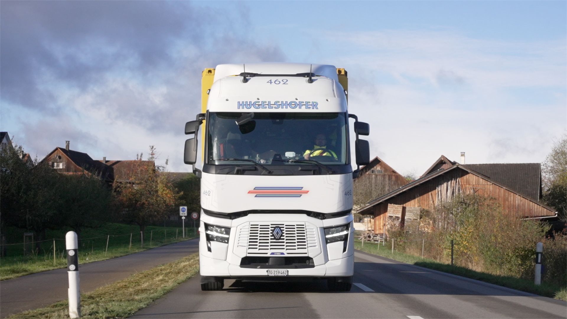 For å få mest mulig driftstid ut av sine elektriske lastebiler og optimalisere de totale eierkostnadene (TCO), kjører det sveitsiske transportselskapet Hugelshofer Logistik sine Renault Trucks E-Tech T-lastebiler med doble skift. Sjåførene lader i hviletiden og lastebilene blir fulladet ved depotet over natten. Med denne tilnærmingen kjører de elektriske lastebilene over 600 kilometer hver på en typisk dag, til tross for en nominell rekkevidde på 300 kilometer.